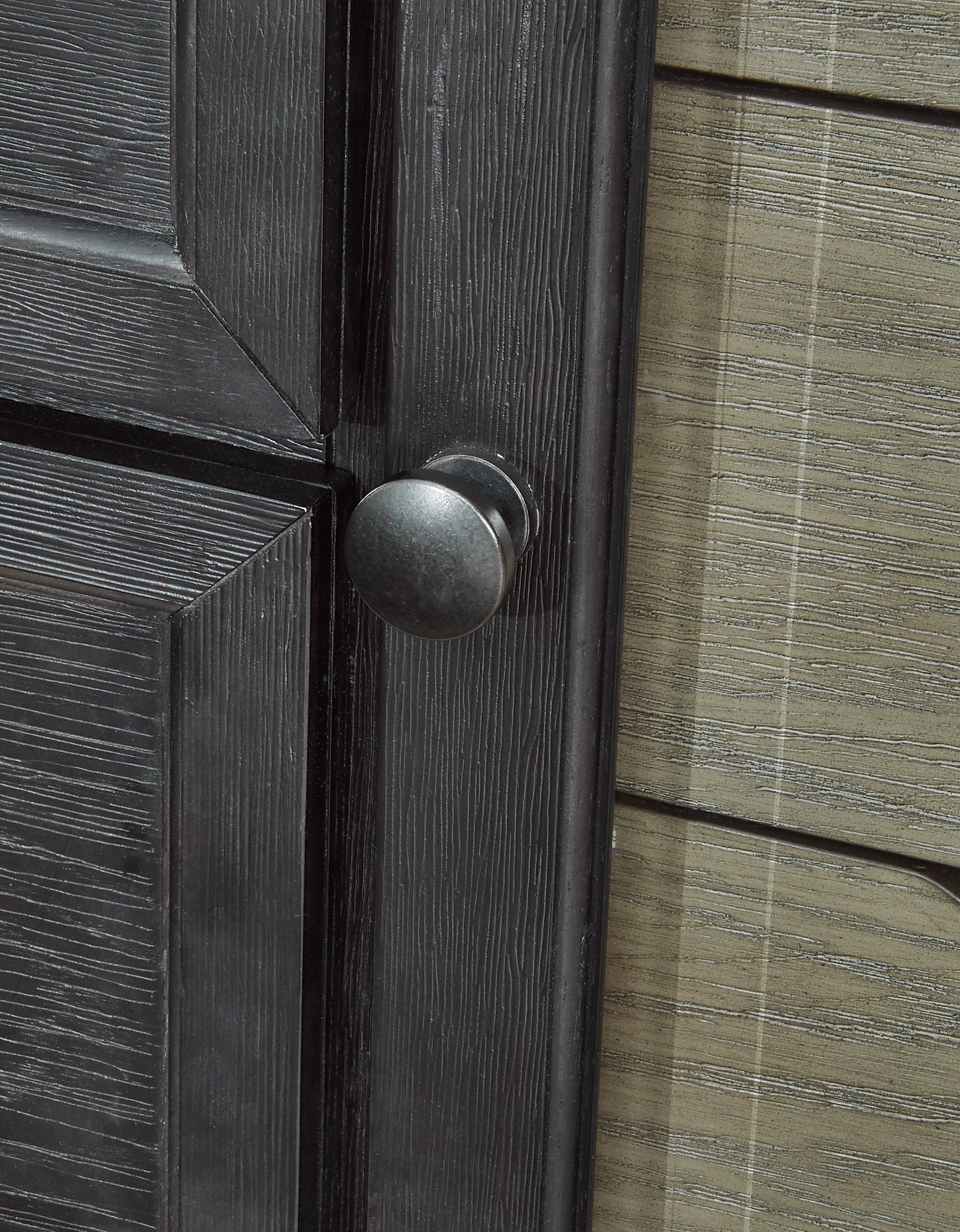 | Details | B989B4: Includes king panel headboard, storage footboard and rails with roll slats, Made with hardwood solids, select oak veneers and engineered wood, Two-tone finish (brushed black and dusty grayish brown wood tone), Headboard with picture frame moulding, Footboard with two deep drawers, Smooth-gliding soft-close drawers with fully finished interiors and dovetail construction, Sleek drawer pulls with black finish, Bed does not require additional foundation/box spring; accommodates most zero clearance adjustable bases with the addition of a bunkie board, Mattress available, sold separately, Assembly required, B989B1: Includes dresser and mirror, Made with hardwood solids, select oak veneers and engineered wood, Two-tone finish (brushed black and dusty grayish brown wood tone), Sleek drawer pulls with black finish, 11 soft-close, smooth-gliding drawers with fully finished interiors and dovetail construction (top drawers felt lined), 5 drawers with brushed black finish; 6 drawers with grayish brown wood tone, 3 drawers located behind each door, Mirror mounts to back of dresser, Assembly required, | |