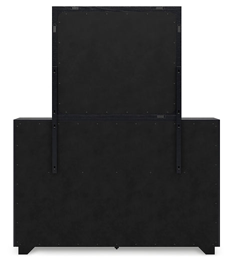 | Details | B768B2: Includes headboard, footboard and rails, Made with pine solids, veneers and engineered wood substrate, Textured black wood stain with waxy topcoat, Extra wide rails for a bench-like wrap around, Foundation/box spring required, sold separately, Mattress available, sold separately, Assembly required, B768B1: Includes dresser and mirror, Made with pine solids, veneers and engineered wood substrate, Textured black wood stain with waxy topcoat, Hardware-less design, 6 drawers with fully finished interiors, dovetail construction and ball-bearing side glides (top drawers felt lined), Mirror attaches to back of dresser, | |